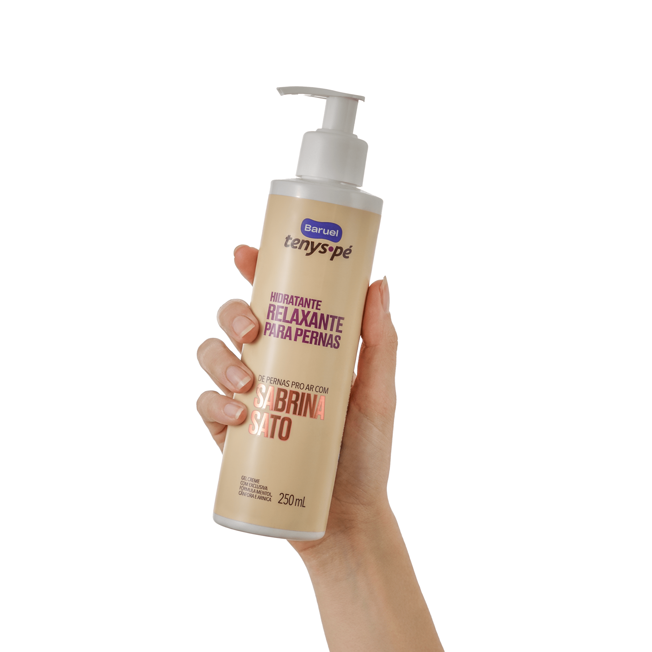 O Hidratante Relaxante para Pernas Sabrina Sato de Tenys Pé Baruel foi inspirado em um estilo de vida de mulheres dinâmicas. Ele reduz dores e cansaço nas pernas com sua exclusiva fórmula com Mentol, Cânfora e Arnica. Além de hidratar por até 48 horas, promove alívio imediato e sensação de leveza nas pernas.